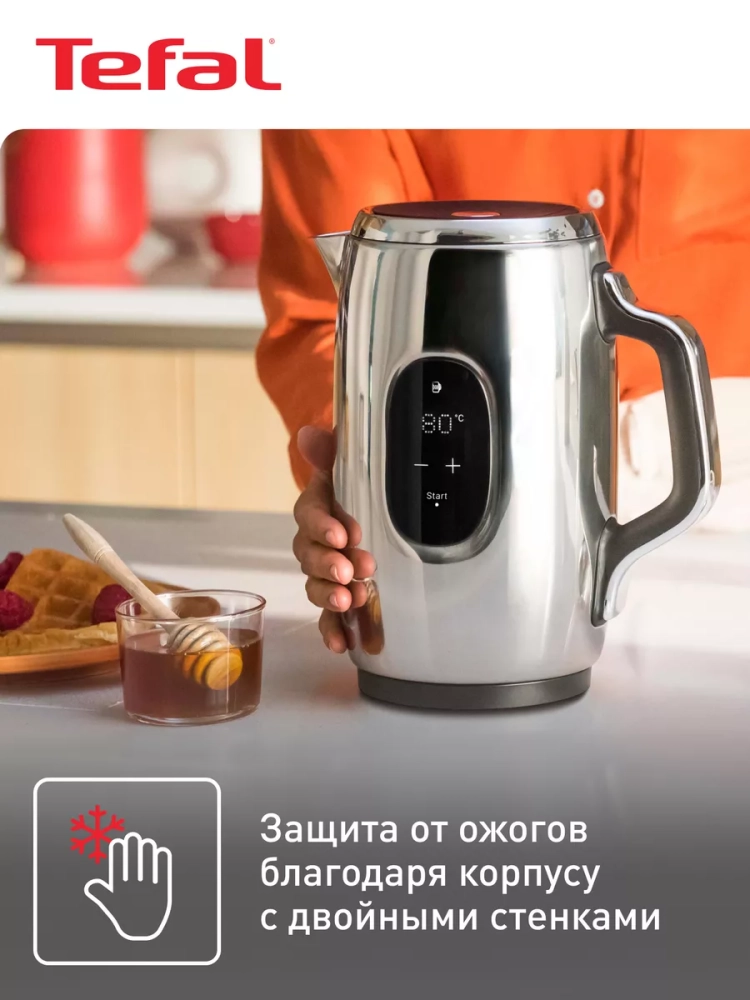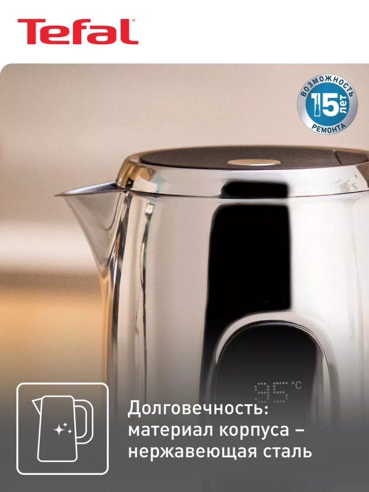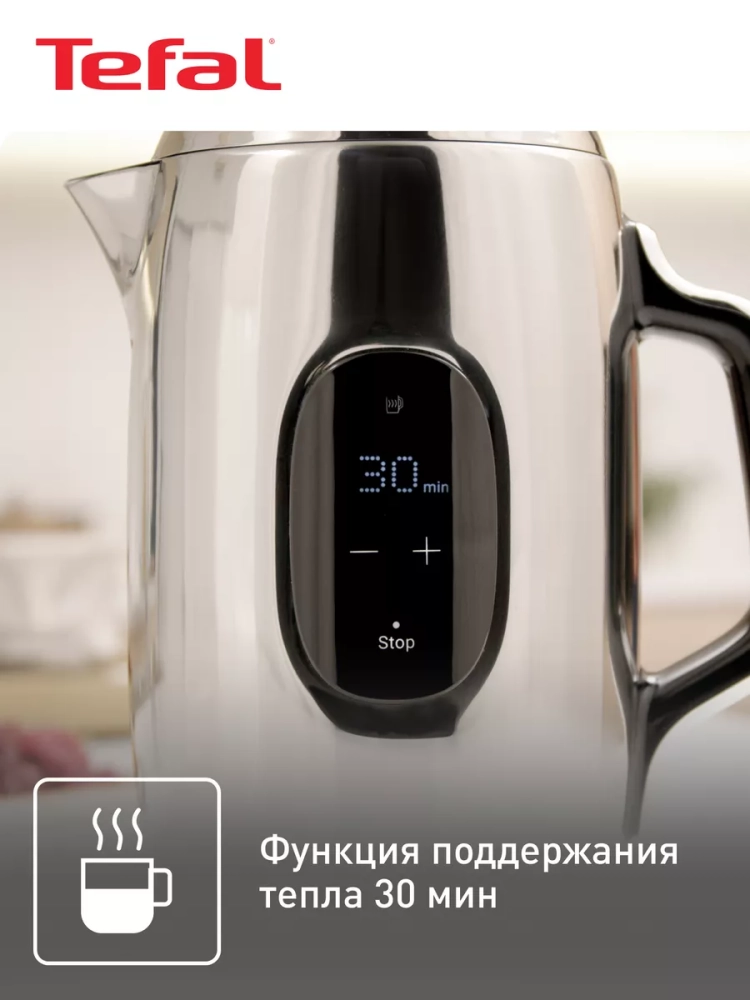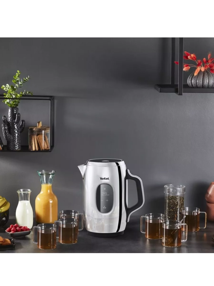 Электрический чайник Tefal Majestuo KI883D10 дополнит безупречный стиль в вашей кухне! Изящные контуры и высококачественные материалы сочетаются с передовыми технологиями для приготовления идеального завтрака, заряжающего энергией и хорошим настроением. Кухонный электрочайник оснащен интуитивно понятным сенсорным дисплеем, отображающим всю необходимую информацию, включая текущую температуру воды и таймер функции подогрева.