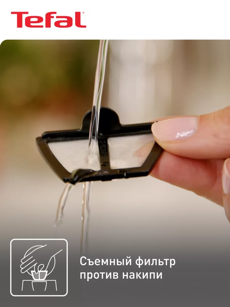 Благодаря съемному фильтру, который предотвращает образование накипи в чайнике, обеспечивая идеальный вкус напитков изо дня в день. Высокая мощность чайника Тефаль гарантирует быстрый нагрев воды, не отнимая у вас драгоценное время утром.