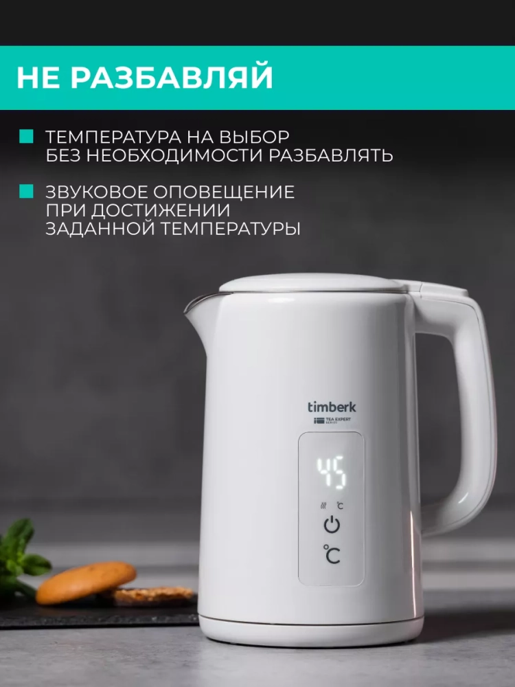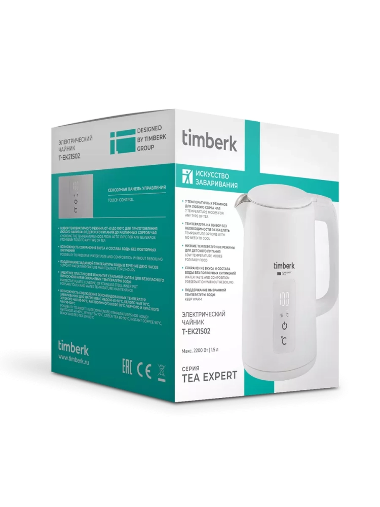 Чайник Timberk поддерживает температуру в течение 2 часов, чтобы Вы дольше наслаждались горячими напитками. Двойные стенки делают внешнюю поверхность чайника безопасной для прикосновения. Сенсорная панель управления с индикатором позволяет контролировать температуру воды. Чайник оснащён системой защиты от сухого кипячения, если в чайнике нет или мало воды, он автоматически отключится. В комплект прибора входят база питания с отсеком для хранения шнура, съемный нейлоновый фильтр для защиты от накипи.