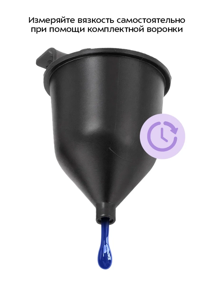 Сопла из меди с диаметром 1,8 и 2,5 мм предназначены для удобного распыления различных материалов. Гаечный ключ из комплекта поможет легко сменить сопло. С помощью краскопульта КТ-6495 можно наносить материалы с вязкостью до 100 секунд (см. подробнее в разделе «Измерение вязкости материала»). В комплекте есть воронка для измерения вязкости лакокрасочного материала, а также игла для чистки сопел.