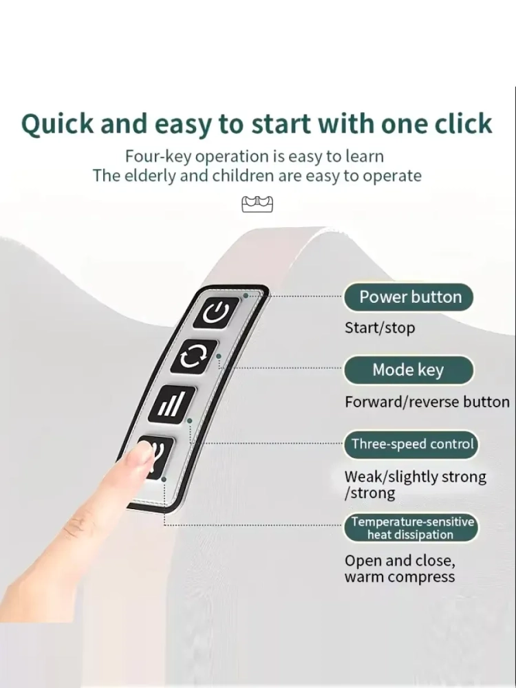 Электрический массажер для ног — это превосходное средство для снятия усталости и напряжения! Этот прибор сочетает в себе функции разминания, вибрации и рефлексологии, обеспечивая разнообразные техники массажа: пульсацию, разминание и перекатывание.