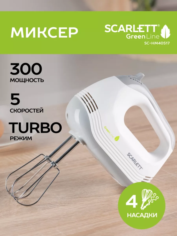 Ручной электрический миксер Scarlett - это надежный и мощный помощник на кухне для любой кондитерской задачи. С максимальной мощностью 300 Вт этот прибор легко справляется с взбиванием белков, кремов и легкого теста. Он обладает пятью скоростными режимами, которые обеспечивают удобство в работе, а также режимом TURBO, который усиливает вращение насадок и повышает эффективность обработки ингредиентов.