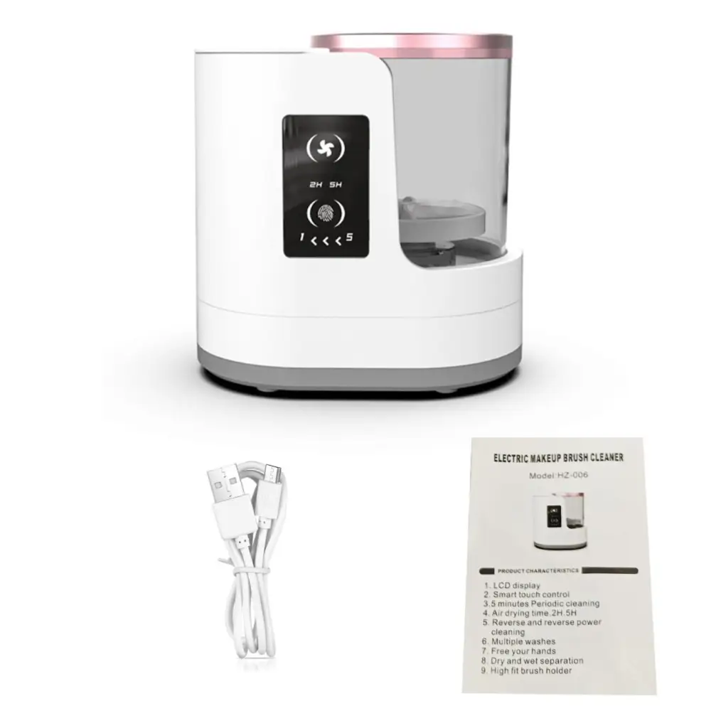 Портативное устройство для чистки и сушки косметических кистей Автоматическая машинка для чистки всех типов кистей Характеристики: 1. Интегрированный дизайн: объединяет мытье и сушку, экономит время и место. Просто положите кисти, выберите режим — и оно автоматически очистит и высушит. 2. Эффективная очистка: вращение высокой скорости удаляет косметические остатки, обеспечивая чистоту кистей. 3. Быстрая сушка: умный таймер 2H/5H, безопасная и удобная сушка без перегрева. 4. Многофункциональность: подходит для тональных, теневых и румяных кистей. 5. Простота в использовании и уходе: удобный интерфейс, съемный дизайн для легкой очистки и гигиены. Комплектация: 1* Электрическая машинка для чистки кистей 1* Кабель для зарядки 1* Инструкция