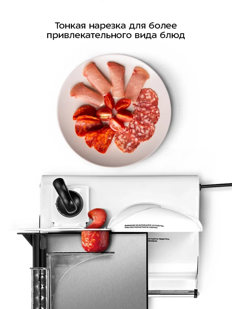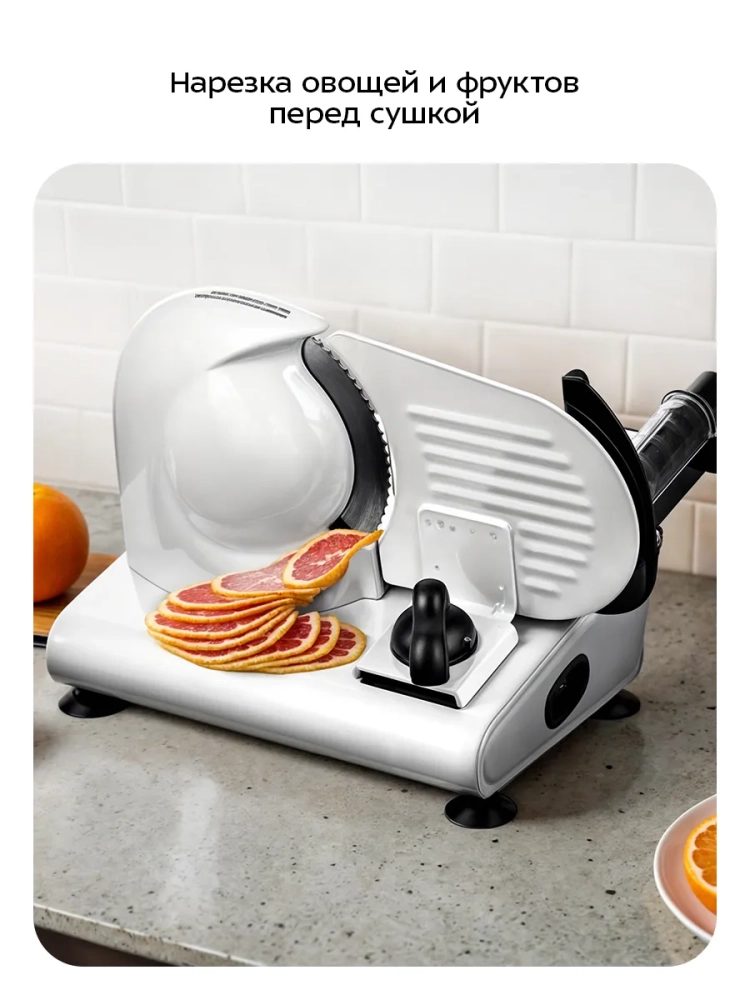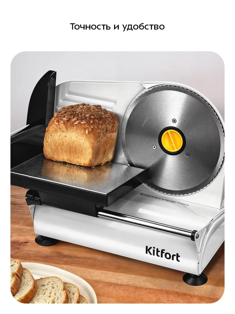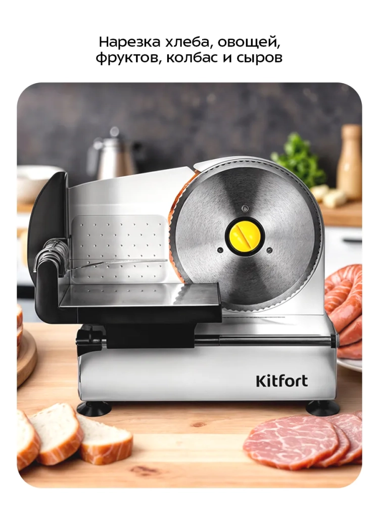Электрическая ломтерезка Kitfort КТ-6269 – это незаменимый бытовой кухонный прибор для тех, кто ценит скорость и аккуратность в процессе готовки. Этот гаджет предназначен для нарезки хлеба, овощей, фруктов, колбас и сыров. С его помощью вы сможете быстро нарезать продукты на ровные ломтики одинаковой толщины от 1 до 15 мм. Это делает даже простые блюда более аппетитными и интересными. Ломтерезка оснащена дисковым ножом из нержавеющей стали с волнообразным краем, который легко снимается для заточки или очистки. Управление устройством осуществляется с помощью удобного переключателя на корпусе. Прочный металлический корпус обеспечивает долговечность прибора. Этот электро прибор станет отличным помощником в домашней кухне благодаря своей универсальности: он подходит как для приготовления блюд из свежих продуктов, так и для подготовки ингредиентов к сушке в духовке или сушилке. Ломтерезка позволяет существенно сократить время нарезки по сравнению с обычным ножом. Слайсер Kitfort КТ-6269 – это не просто техника для кухни; это надежный помощник в создании кулинарных шедевров дома! Благодаря устойчивым ножкам на присосках овощерезка остается стабильным во время работы. Эта электрическая техника идеально подходит как для шинковки овощей, так и для нарезки колбасы или сыра тонкими ломтиками. Все части электроприбора, контактирующие с продуктами питания, съемные и легко моются без риска повреждения корпуса водой.