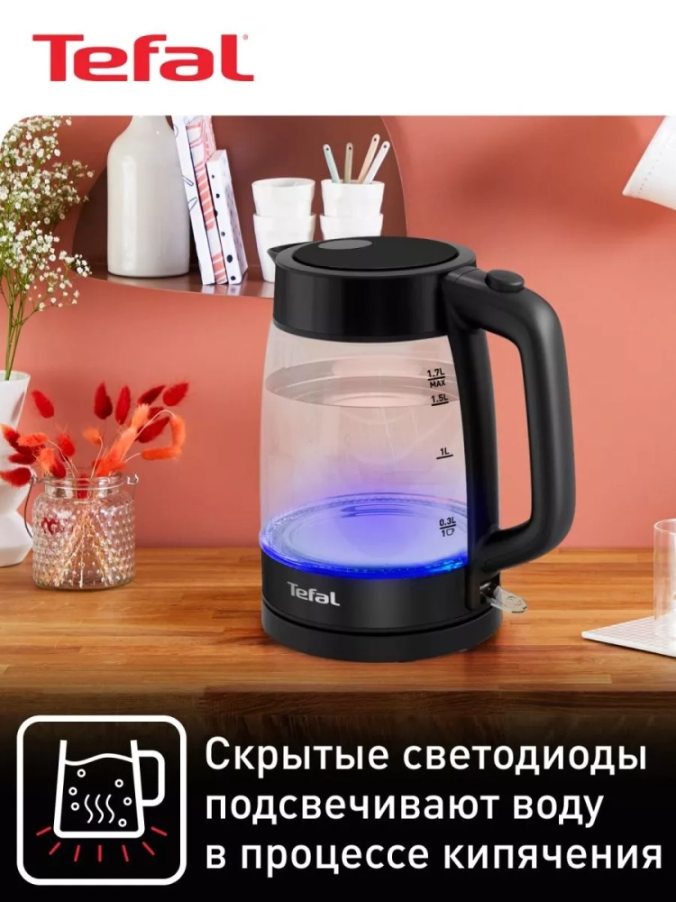 Наслаждайтесь неизменным вкусом любимых напитков вместе со стеклянным чайником Tefal KI840830!