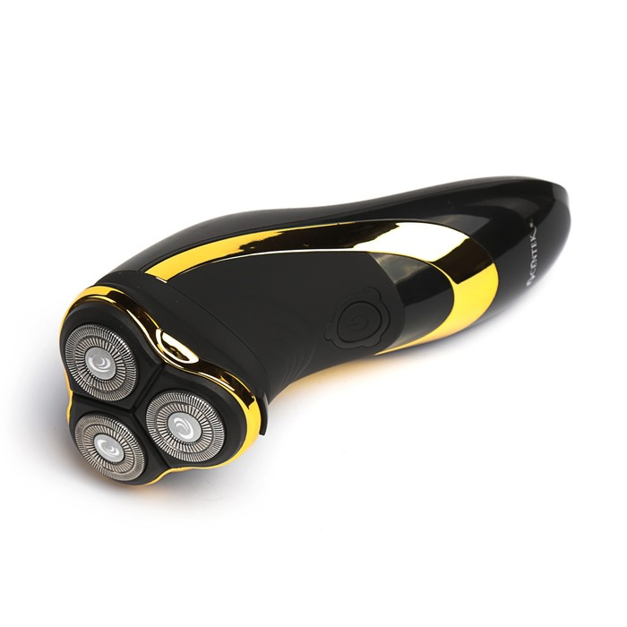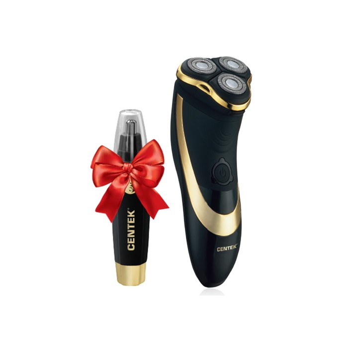Электробритва Centek CT-2160, 3 Вт, роторная, 3 плавающие головки, триммер, черно-золотая
