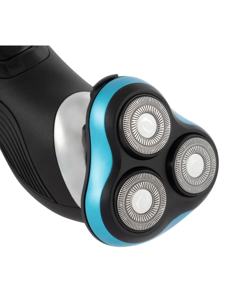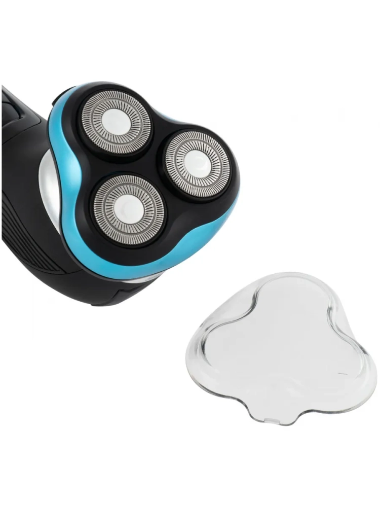 Бритва роторная Hyundai H-SH8085 черный, бритвенных головок: 3шт, питание от аккумулятора, встроенный триммер, зарядное устройство, защитная каппа(колпачек), щеточка для чистки