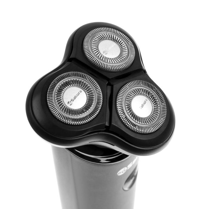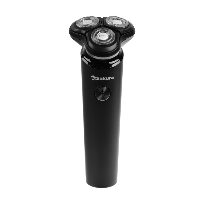 Электробритва Sakura SA-5430BK, 5 Вт, роторная, 3 головки, сухое бритьё, АКБ, чёрная
