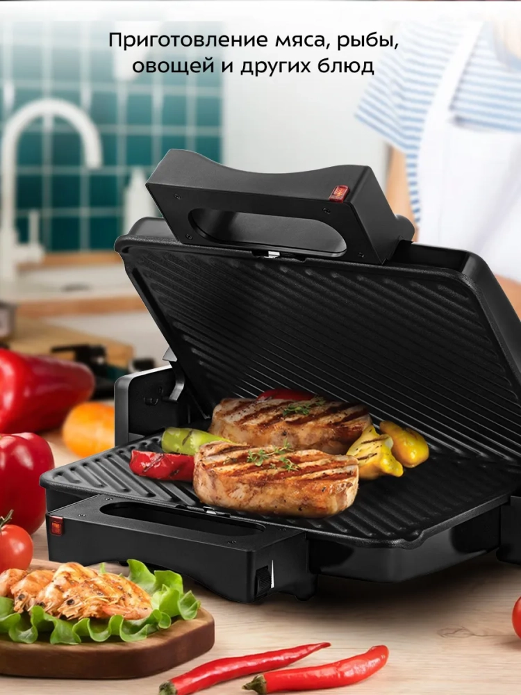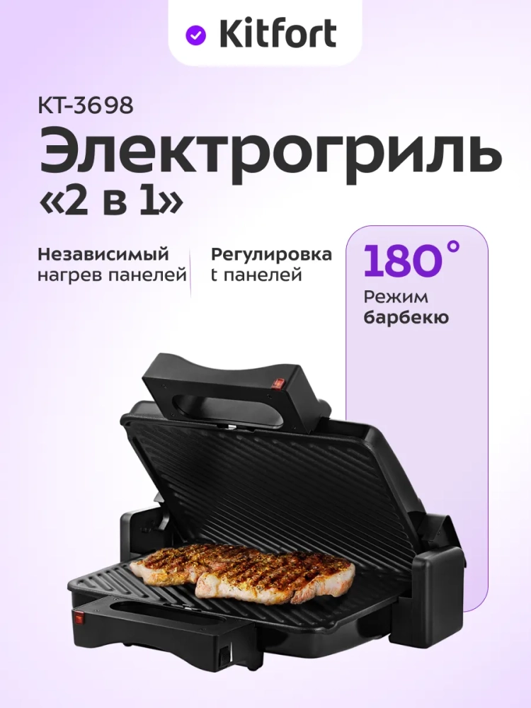 Электрогриль Kitfort КТ-3698 предназначен для приготовления мяса, рыбы, овощей, сосисок, бутербродов, панини, сэндвичей, гренок, тостов и многих других блюд.