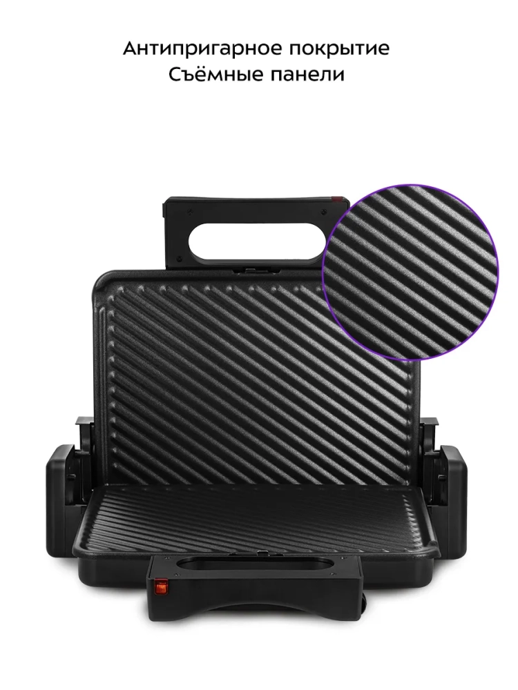 Панели электрогриля съемные, что упрощает уход за прибором.