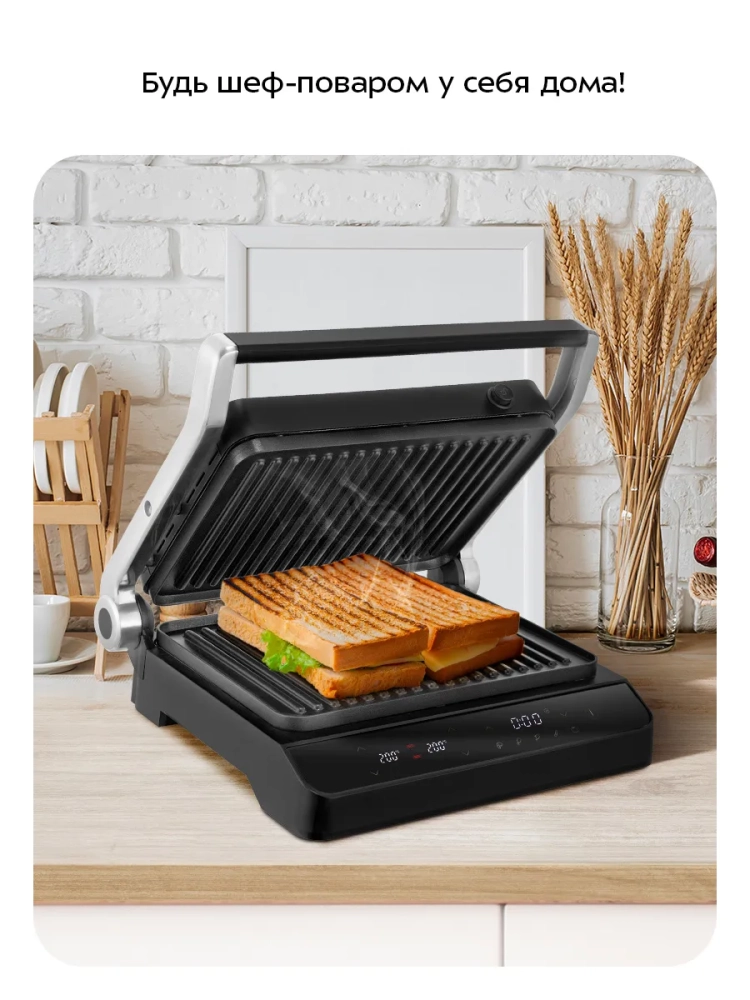 Техника Kitfort славится своей надежностью и долговечностью. Электрогриль этой марки — это не просто устройство для готовки, а полноценный элемент вашей кухонной техники, который поможет разнообразить меню и сэкономить время. Грильница позволяет готовить не только мясо и рыбу, но и использовать ее в качестве вафельницы, что делает ее универсальным прибором для кухни.