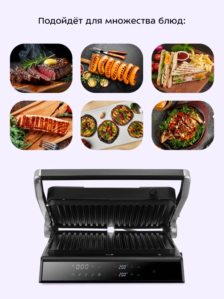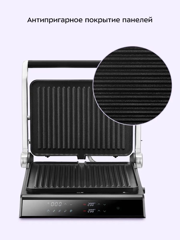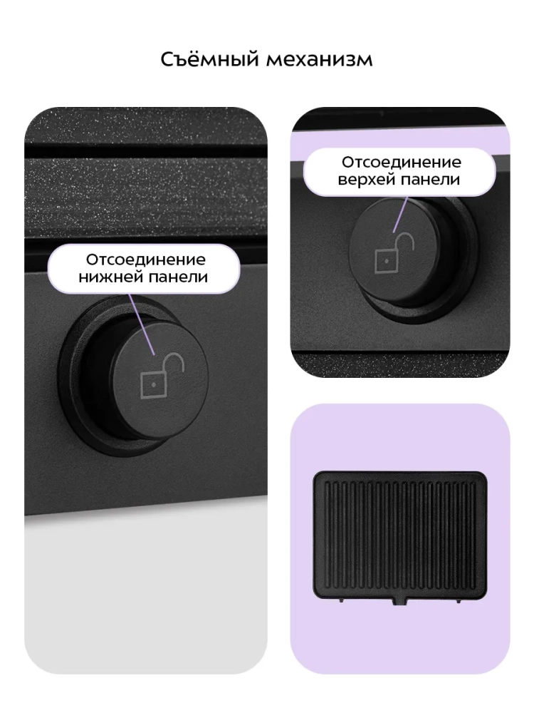 Электрогриль Kitfort отличается съемными панелями, которые значительно упрощают процесс очистки и ухода за устройством. Панели изготовлены из высококачественных материалов, обеспечивающих долговечность и надежность в эксплуатации. Съемные панели позволяют легко менять режимы готовки, что делает этот электрический гриль универсальным решением для любой кухни.