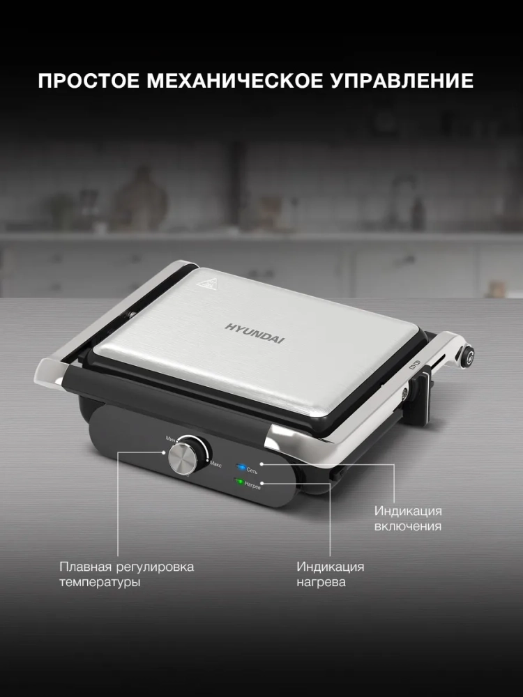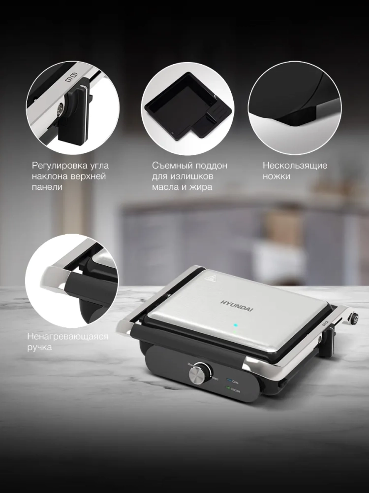 Электрогриль Hyundai HYG-3041 черный/черный, мощность 2000Вт, нагревательный элемент: ТЭН.