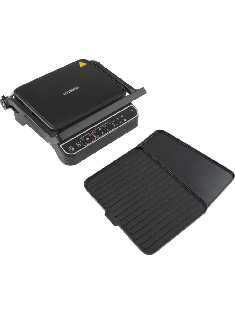 Электрогриль Hyundai HYG-7000 серебристый/черный, мощность 2000Вт, нагревательный элемент: ТЭН 94, 10 автоматических программ для приготовления, а так же ручной режим, для оптимальных настроек для каждого типа продуктов. Открытие на 180°, плоская панель и раздельная регулировка температуры панелей, позволяет использовать гриль как плиту. Термощуп обеспечивает автоматический контроль температуры внутри стейка, тем самым контролирует степень прожарки.