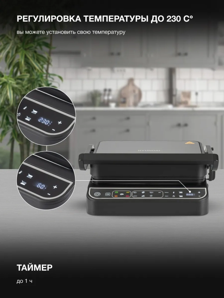 Список режимов/программ приготовления: Стейк(med/med rare/med well/well done), курица, вафли, сосиски, рыба, бекон , овощи, ручной режим.