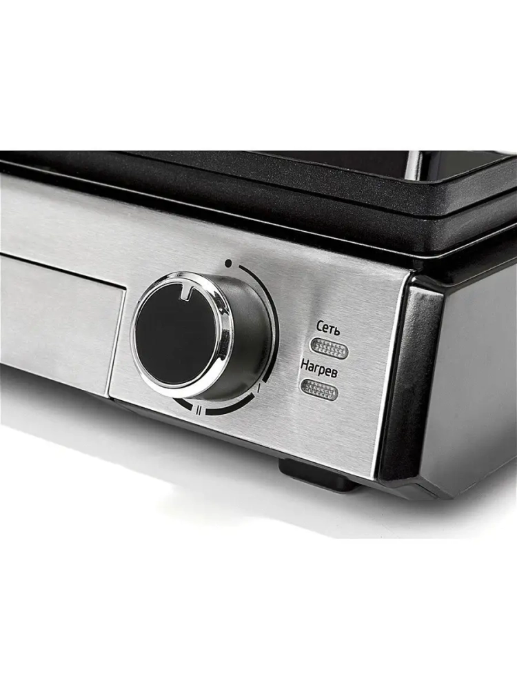 Гриль оснащен термостатом с плавной регулировкой, позволяющим выставить температуру вплоть до 230 *С.