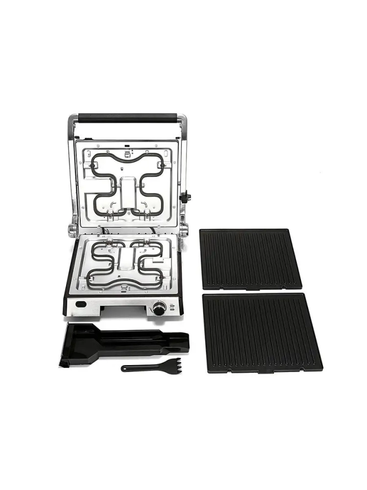 Нагревательные панели изготовлены из алюминия с нанесенным антипригарным покрытием. Они съемные и могут быть легко очищены. Допускается их мойка в посудомоечной машине.