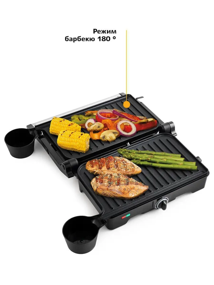 С помощью электрогриля Kitfort KT-1645 можно приготовить мясо, рыбу, сосиски-гриль, бутерброды, панини, сэндвичи, гренки, тосты и многое другое. Ребристая поверхность и высокая температура панелей способствуют быстрому приготовлению и появлению характерного полосатого рисунка на продуктах. Конструкция гриля позволяет готовить в двух режимах. В двухстороннем режиме гриль закрывается крышкой, и продукты готовятся одновременно с двух сторон. В одностороннем режиме крышка гриля откидывается на 180 градусов, и гриль превращается в большую жаровню. Для приготовления можно использовать обе поверхности.