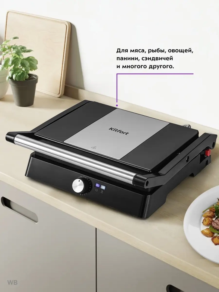Электрогриль КТ-1661 двусторонний гриль электрический 2200Вт