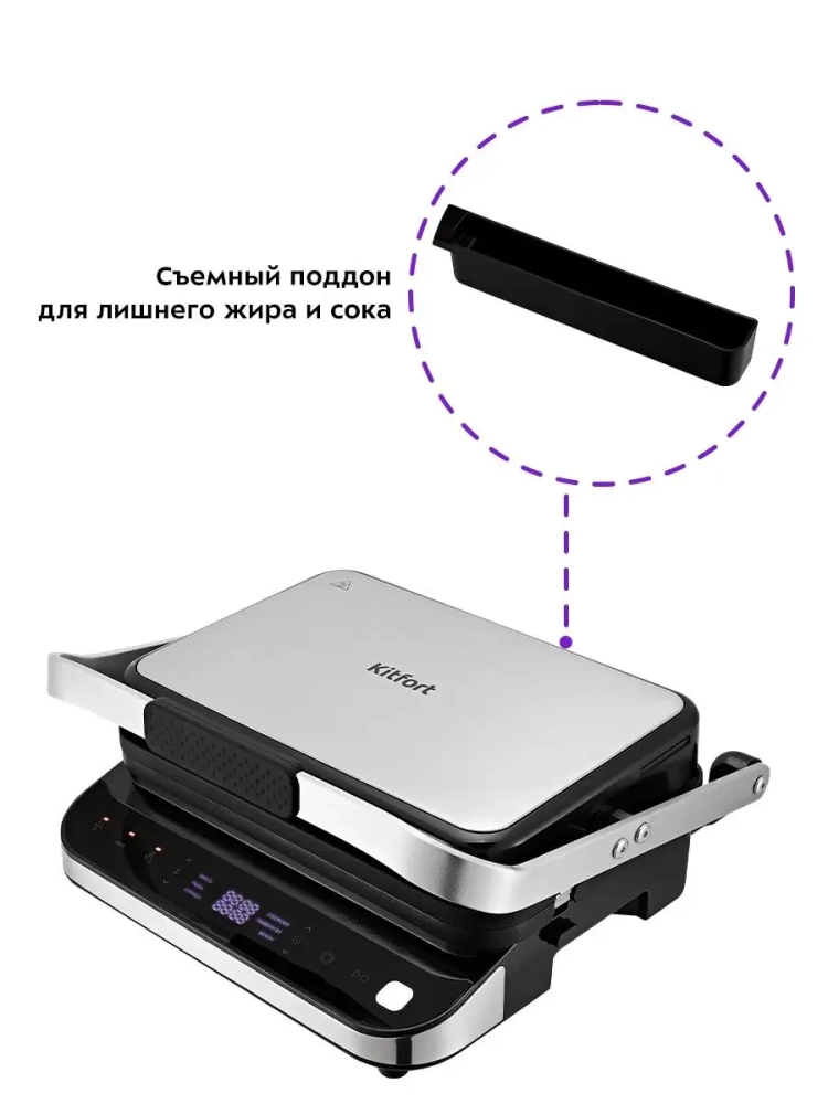 Для сбора жира, соков и прочих жидкостей предназначен специальный съемный поддон — во время приготовления излишки жидкости стекают в него.