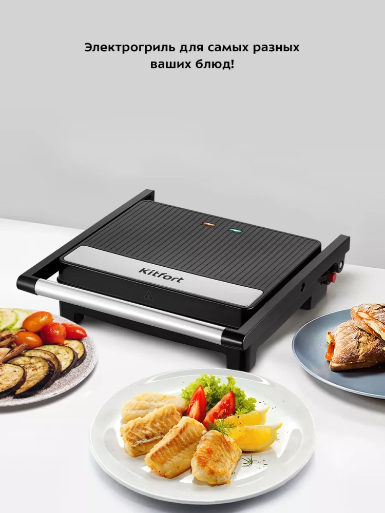 Электрогриль Kitfort КТ-3603 предназначен для приготовления мяса, рыбы, овощей, сосисок, бутербродов, панини, сэндвичей, гренок, тостов и многих других блюд.