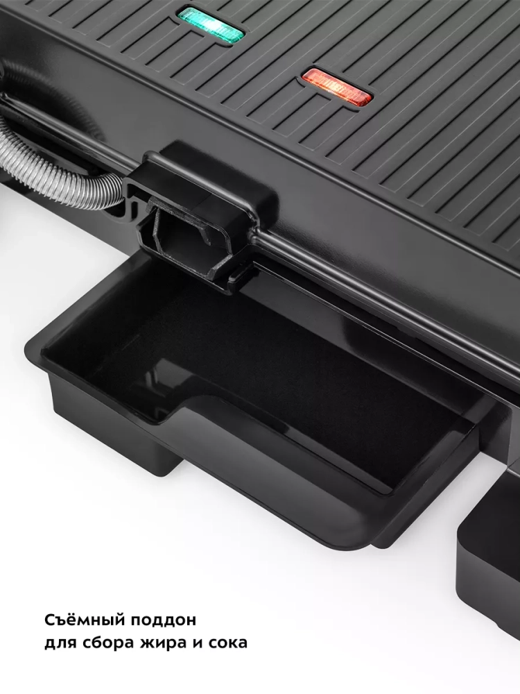 Данная модель оснащена поддоном для слива жира и сока, которые выделяются в процессе приготовления продуктов.