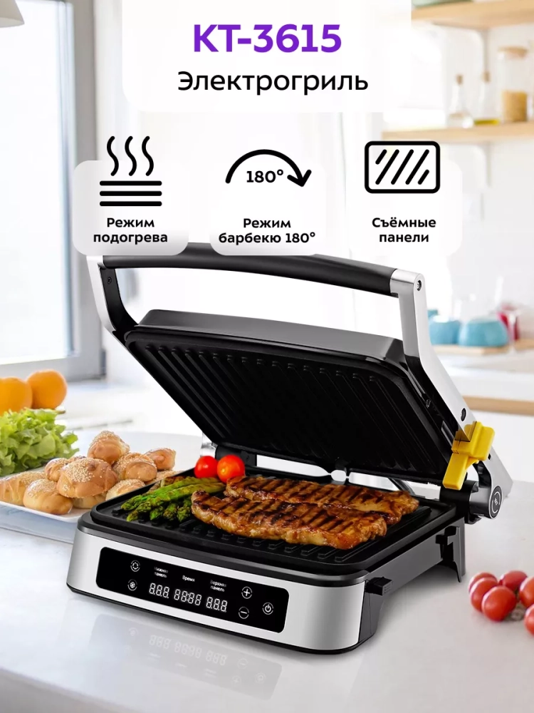 Электрогриль КТ-3615 гриль электрический для дома - 2000 Вт