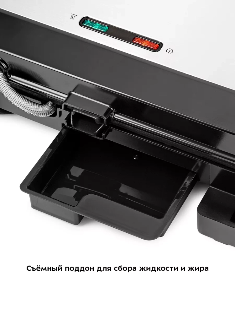 Данная модель оснащена поддоном для слива жира и сока, которые выделяются в процессе приготовления продуктов.
