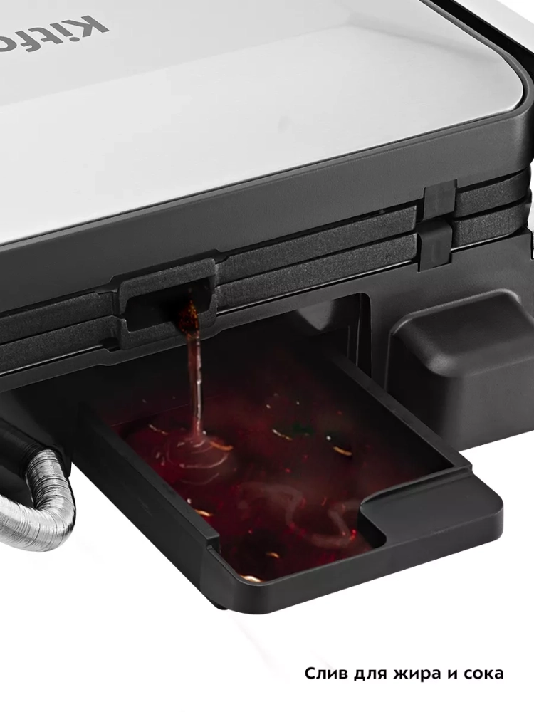 Данная модель оснащена поддоном для слива жира и сока, которые выделяются в процессе приготовления продуктов.