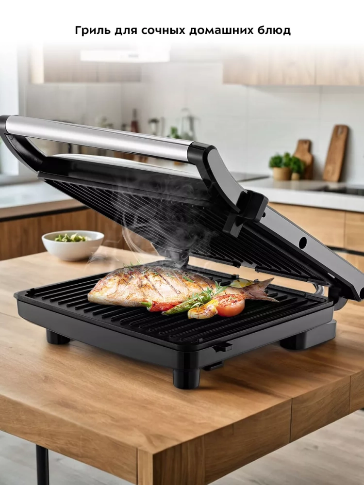 Электрогриль Kitfort КТ-3676 предназначен для приготовления мяса, рыбы, овощей, сосисок, бутербродов, панини, сэндвичей, гренок, тостов и многих других блюд.