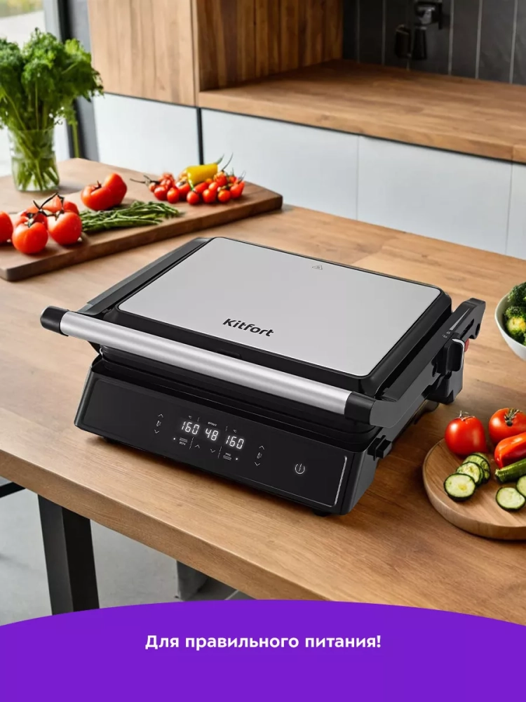 Электрогриль Kitfort КТ-3682 предназначен для приготовления мяса, рыбы, овощей, сосисок, бутербродов, панини, сэндвичей, гренок, тостов и многих других блюд.