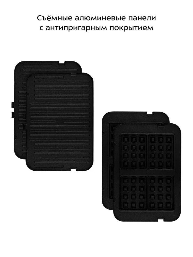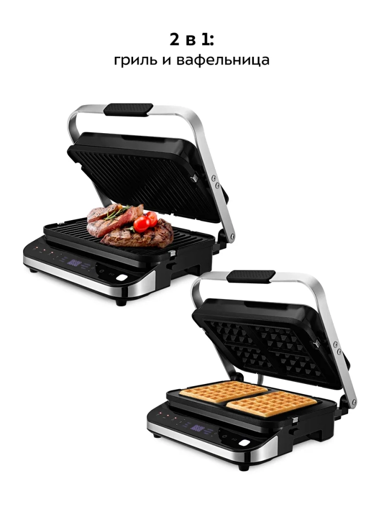 Конструкция электрогриля предусматривает два режима работы: двусторонний и односторонний. В двустороннем режиме крышка закрывается, обеспечивая равномерное приготовление с двух сторон без необходимости переворачивания продуктов. В одностороннем режиме крышка откидывается на 180°, превращая гриль в большую жаровню с возможностью использования обеих панелей одновременно. Панели изготовлены из алюминия с антипригарным покрытием, что позволяет использовать минимум масла и облегчает чистку после приготовления. Электрогриль оснащен термостатом для поддержания постоянной температуры и панелью управления для выбора режимов работы устройства. Съемный поддон предназначен для сбора жира и соков во время готовки, что делает процесс более удобным и гигиеничным. В комплект входят дополнительные панели для приготовления бельгийских вафель — идеальное решение для любителей сладкого. Этот бытовой прибор от Kitfort отличается не только функциональностью, но также стильным дизайном и надежностью в эксплуатации. Грильница подходит как для домашнего использования на кухне, так и для барбекю на открытом воздухе благодаря своей универсальности. Электро техника Kitfort КТ-1682 — это ваш шанс насладиться вкусной едой каждый день! Готовьте блюда быстро благодаря этому кухонному устройству.