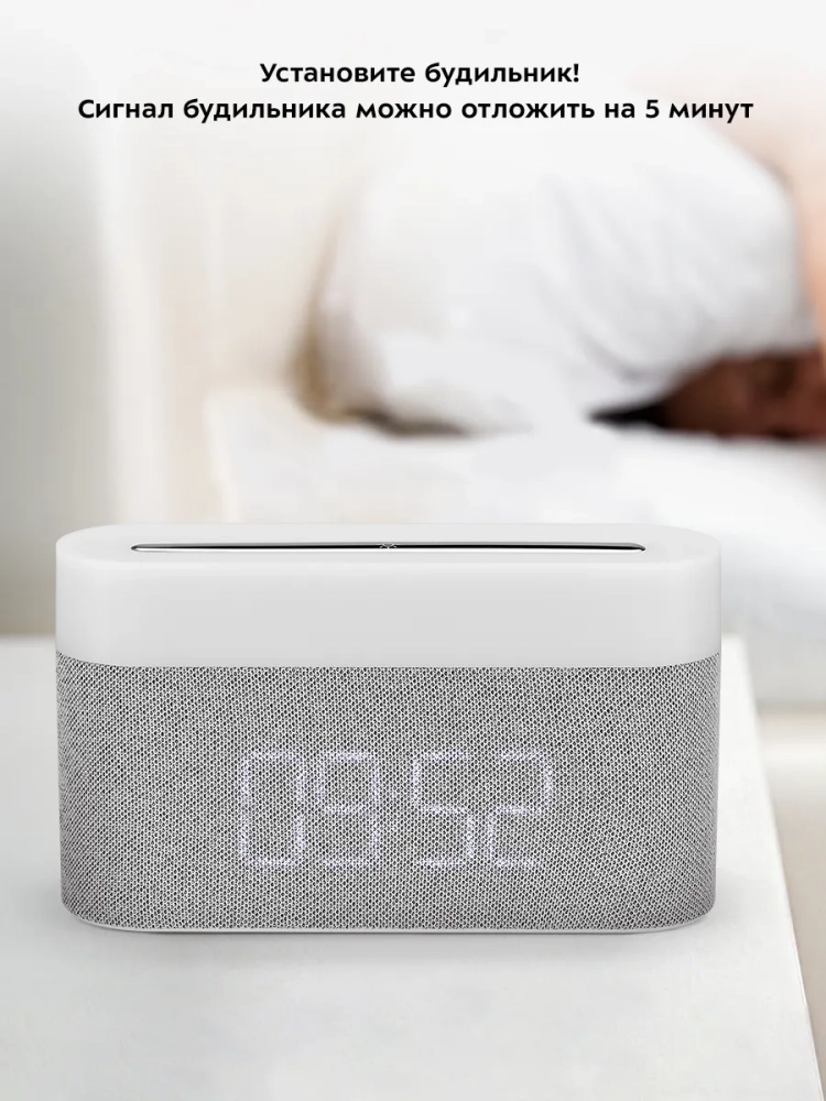 На настольных часах вы можете установить будильник. Громкость сигнала будильника настраивается. Сигнал будильника можно отложить на 5 минут.