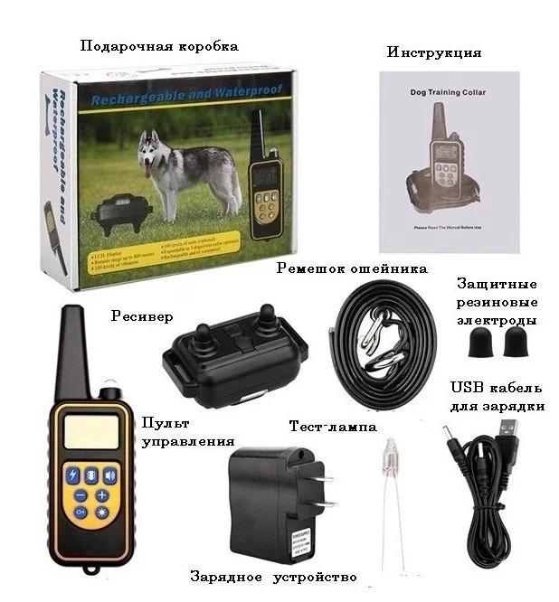 Электронный ошейник для дрессировки собак на аккумуляторах повышенной мощности - это лучшее предложение на рынке по соотношению цена/качество. Электроошейник для собак представляет собой универсальную модель для их эффективной подготовки, коррекции поведения и дрессировки в любом возрасте. Подходит для всех собак весом от 4 до 100 кг. Дальность действия - до 800 метров. Функционал: фонарик на пульте, подсветка на ошейнике, отдельные кнопки на звук/вибро/ток. Ремень из полиуретана с металлической пряжкой от 20 до 70 см. Легкий ресивер с электродами из токопроводящей резины обеспечит кофмортное ношение без натирания кожи собаки. Вибрация и мощный ток настраиваются от 0 до 100. В комплекте дополнительные удлиняющие насадки-колпачки для собак с длинной шерстью.