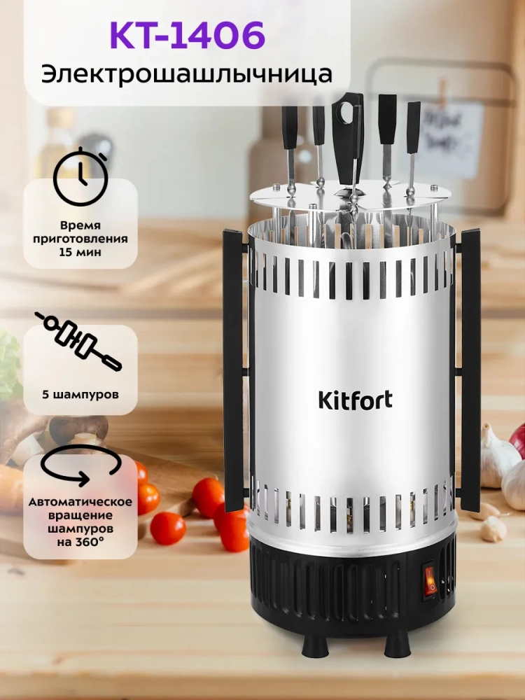 Электрошашлычница Kitfort КТ-1406 — это современный взгляд на приготовление шашлыков в домашних условиях. Вы сможете приготовить вкуснейшие блюда из мяса, птицы, рыбы или овощей всего за 15 минут, получив при этом массу удовольствия и множество восторженных комментариев о ваших кулинарных способностях.