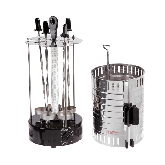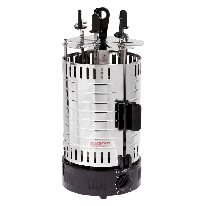 Электрошашлычница ENERGY НЕВА-3, 1000 Вт, 5 шампуров, серебристо-чёрная