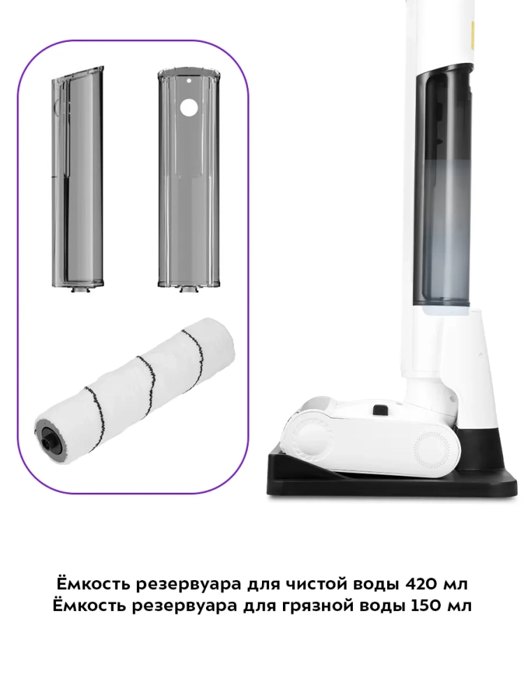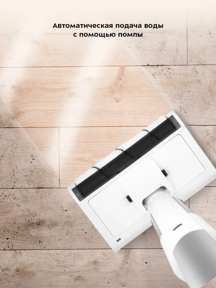 Принцип работы электрошвабры прост: вода из резервуара подается на валик в напольной щетке помпой (водяным насосом), которая позволяет точно дозировать количество подаваемой воды. Валик вращается и собирает на себя загрязнения. Загрязнения вместе с излишками воды собираются в резервуар для грязной воды, не оставляя разводов на влажном полу. Также в устройстве есть функция автоматической очистки, благодаря которой можно с легкостью почистить валик после уборки пола.