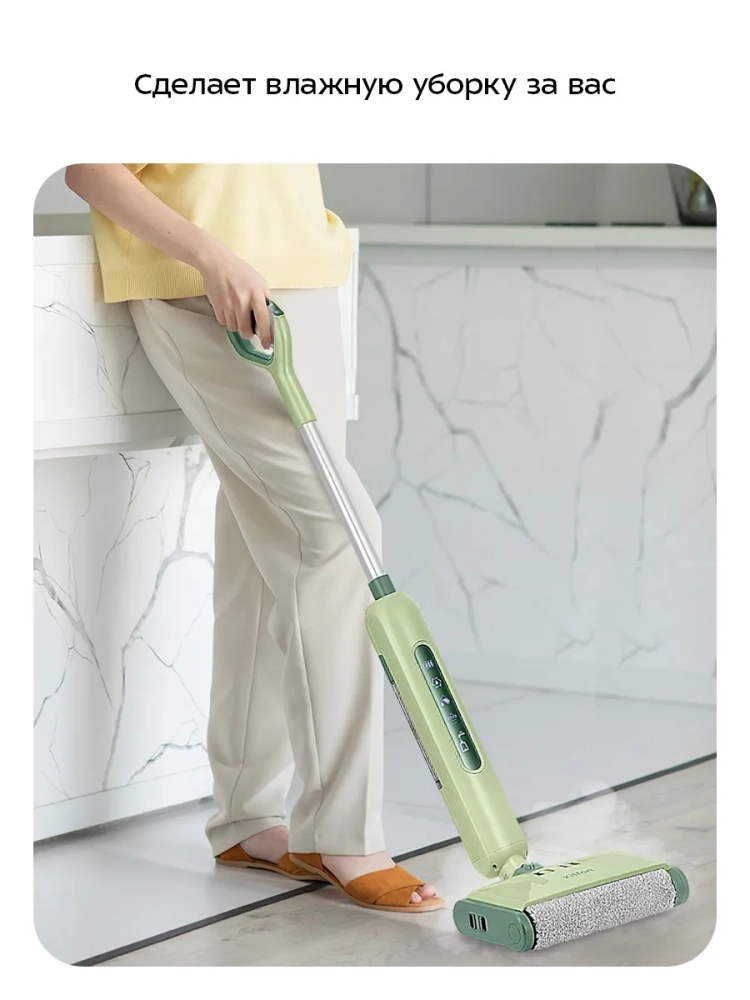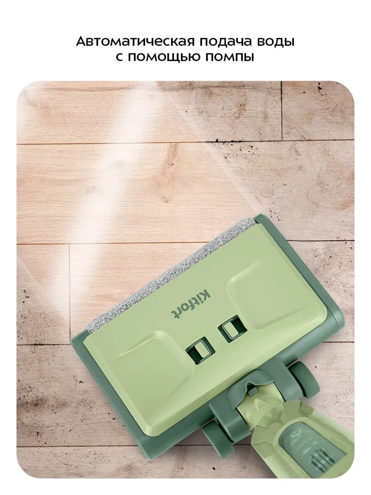 Электрошвабра Kitfort КТ-5216 очень удобна при проведении влажной уборки. Благодаря работе от аккумулятора прибор не нужно включать в сеть и провода не будут мешать во время уборки. У прибора есть голосовой помощник.