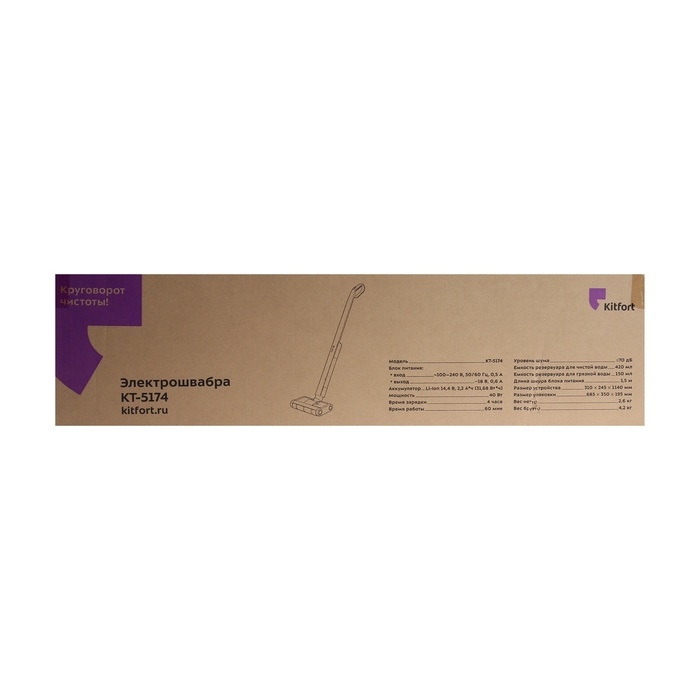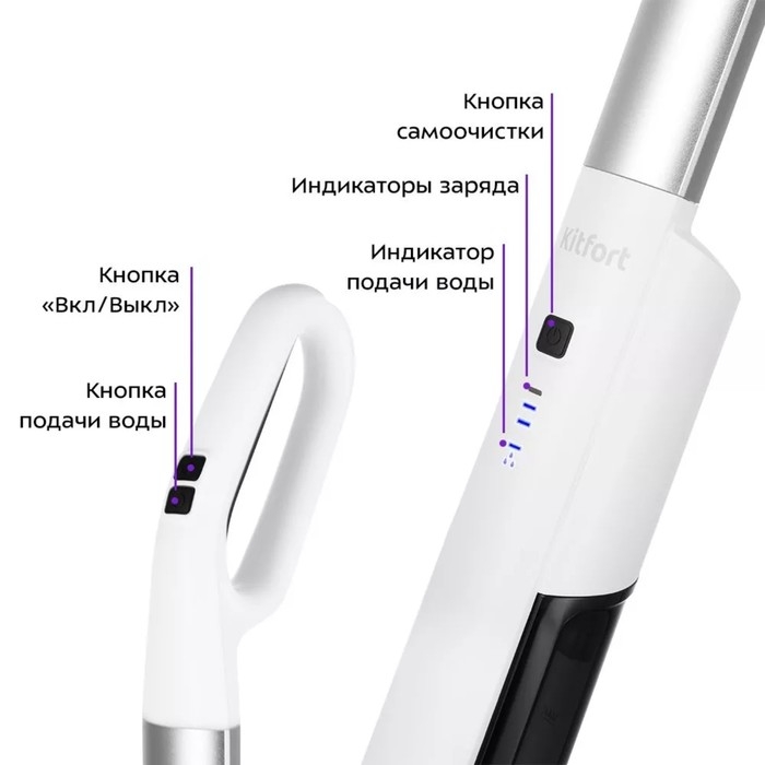 Электрошвабра Kitfort KT-5174, беспроводная, 40 Вт, 420/150 мл, бело-чёрная
