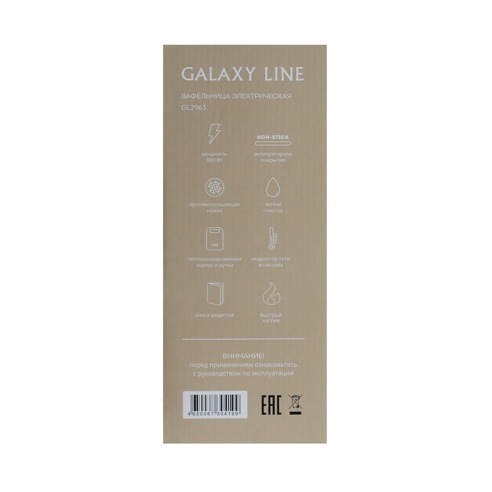 Электровафельница Galaxy GL 2963, 800 Вт, венские вафли, антипригарное покрытие, белая