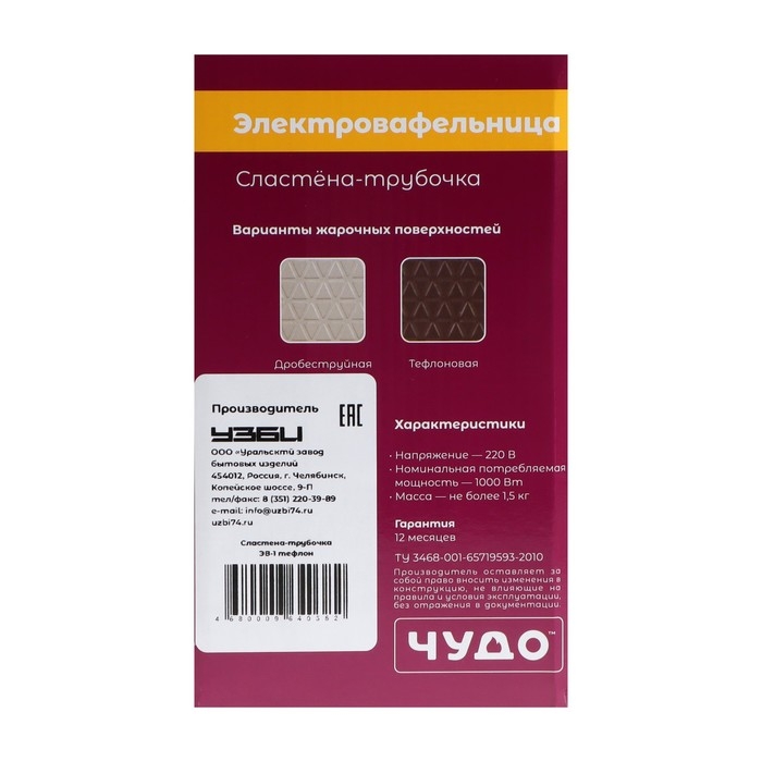 - Тефлоновое покрытие жарочной поверхности.