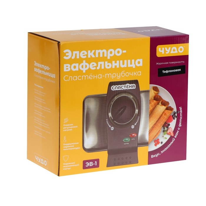 Электровафельница "Сластена" ЭВ-1, 1000 Вт, тонкие вафли, тефлоновое покрытие, серая