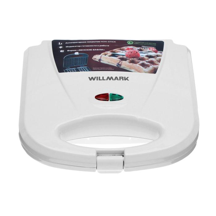 Электровафельница WILLMARK WM-275, 750 Вт, венские вафли, антипригарное покрытие, белая