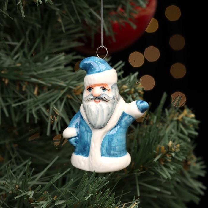 Ёлочная фарфоровая игрушка "Дед Мороз", синяя шуба, 7 см