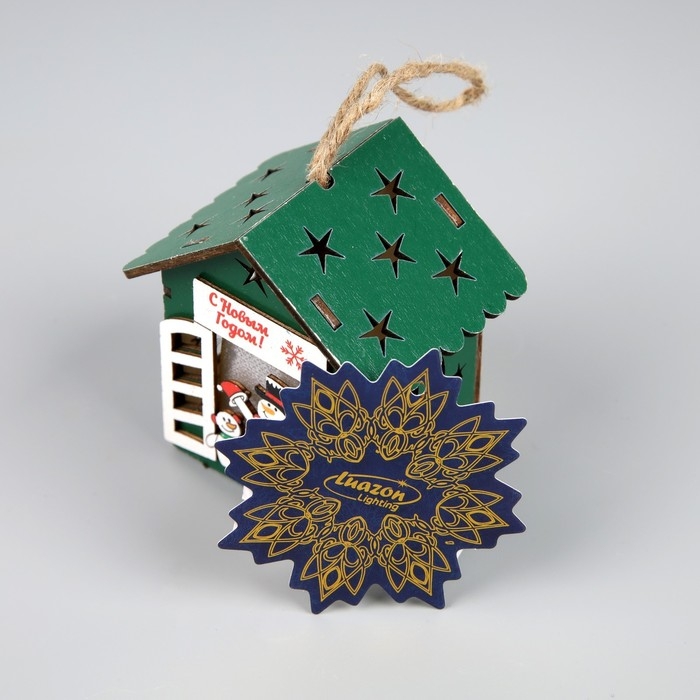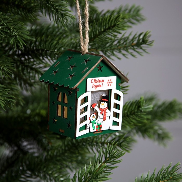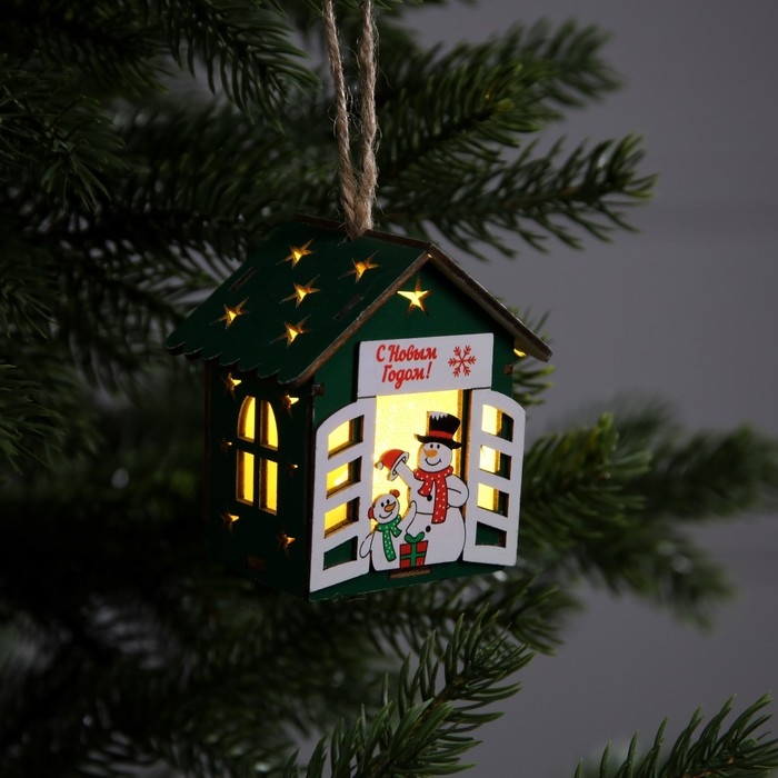 Ёлочная игрушка «Дом снеговиков», от батареек, свечение тёплое белое
