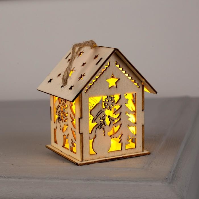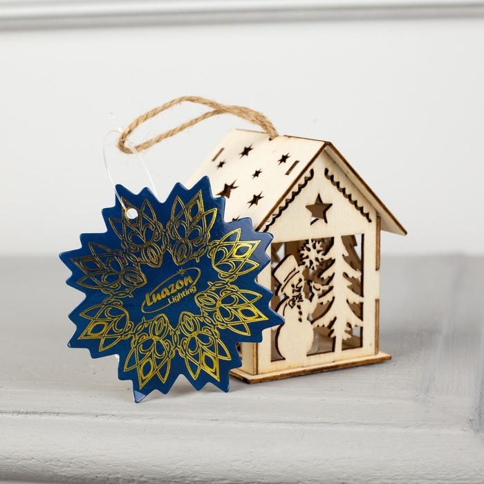 Ёлочная игрушка «Домик со снеговиком», от батареек, свечение тёплое белое