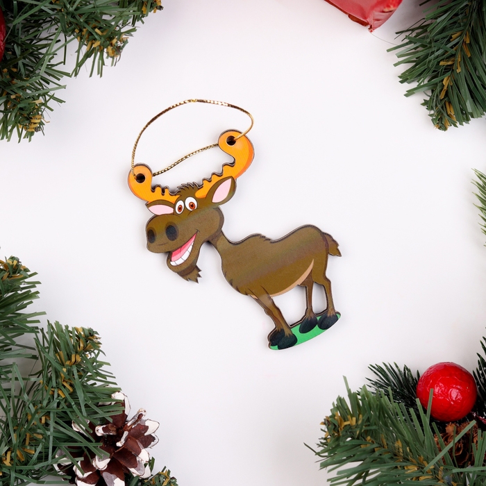 Ёлочная игрушка двусторонняя "Лось", 9х6 см