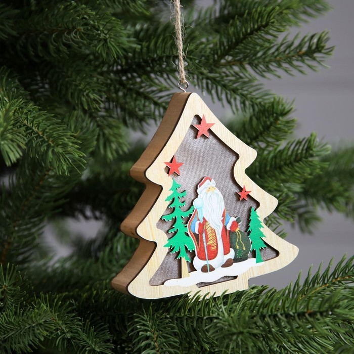 Ёлочная игрушка «Ёлочка с Дедом Морозом», от батареек, свечение тёплое белое