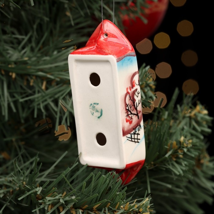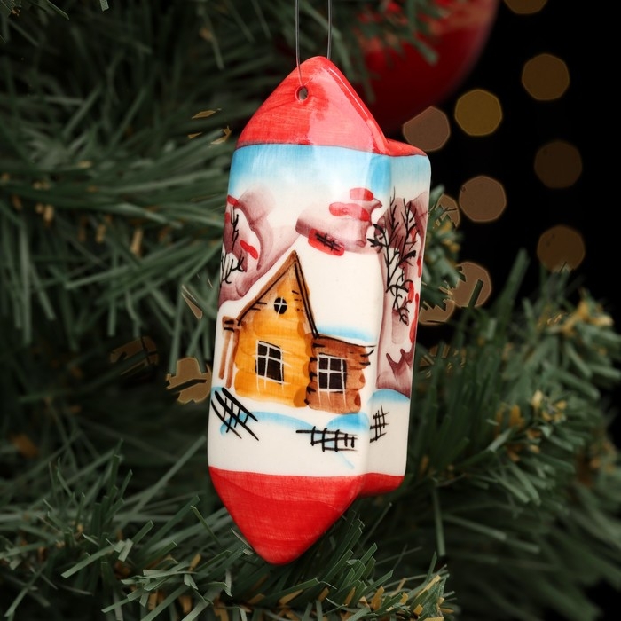 Ёлочная игрушка "Конфета Зима", красная, авторская роспись, 10 см, фарфор