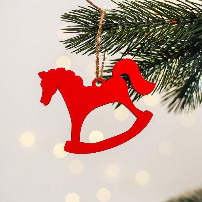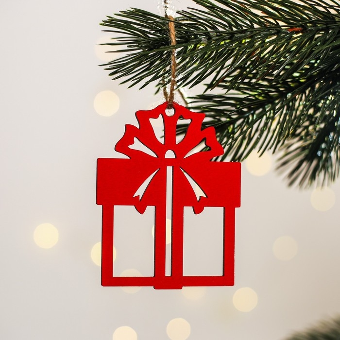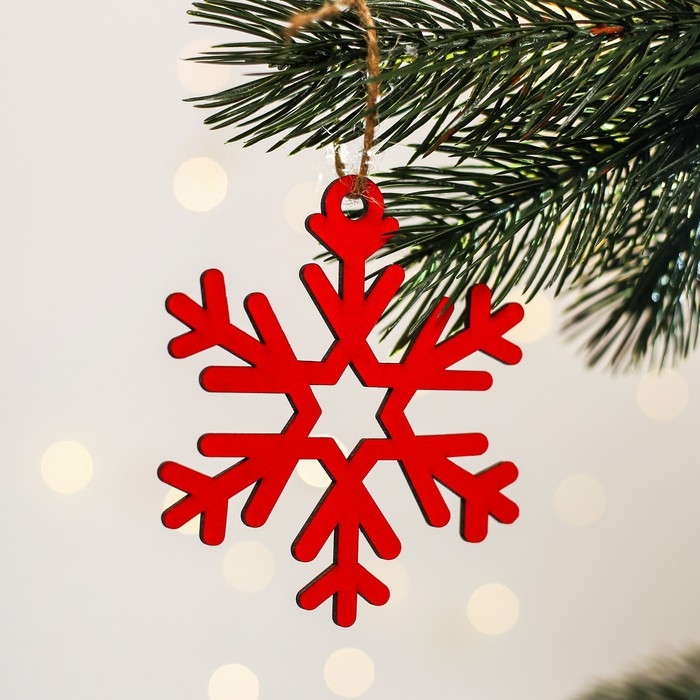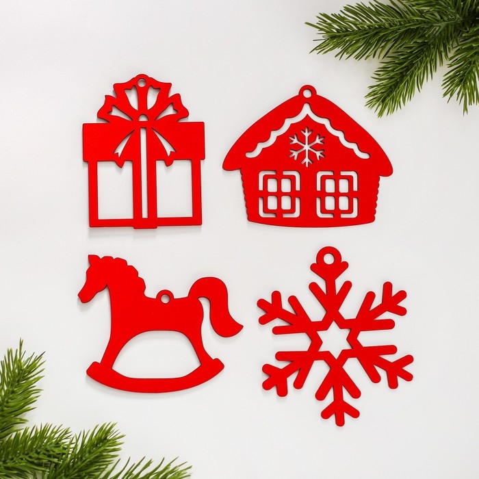 Ёлочная игрушка новогодняя деревянная, 4 шт, набор красный
